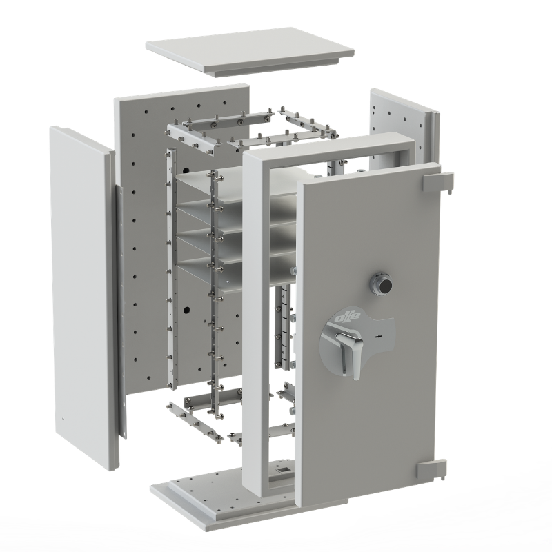 This series of modular safes combines advanced research into new materials with the advantage of a modular system that facilitates transport, access, and installation in any location. Its design allows on-site assembly without losing strength, achieving maximum protection against attacks in accordance with UNE EN 1143-1 Grade IV. They are a versatile and secure solution for the storage of valuables and firearms, also offering a wide range of accessories that adapt to the specific needs of each user.